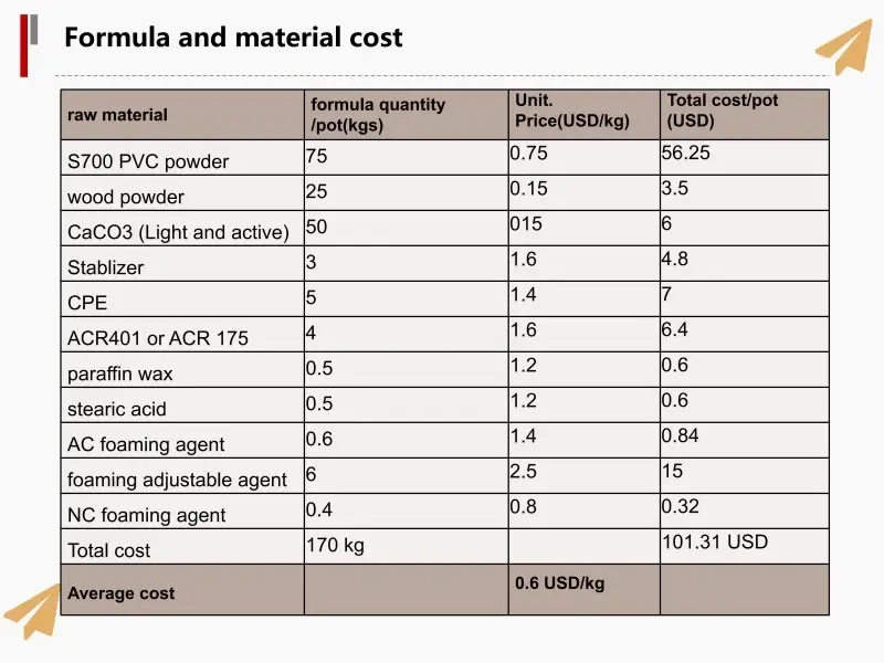 Råmaterialet til fremstilling af WPC dørpanel og dørkarm inkluderer: PVC-harpiks, træpulver, CaCo3 og kemiske tilsætningsstoffer, producenten kan justere formuleringen i henhold til markedets produktbehov.