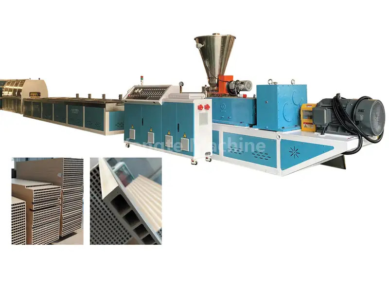 Den specialdesignede koniske dobbeltskrue-ekstruder kan effektivt transportere træmel og PVC-harpiksblandinger, hurtigt blødgøre materialer for at undgå træmelskulning eller PVC-nedbrydning, forbedre produktionseffektiviteten og reducere energiforbruget. Den er udstyret med servomotor til at reducere 15-20% strømforbrug, direkte drevet vertikal gearkasse med høj transmissionseffektivitet og kører stabilt, holdbart og energieffektivt automatisk varme- og temperaturkontrolsystem.